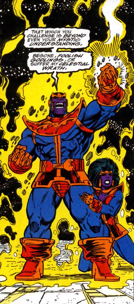And if that story strikes you as a little odd, wait until tomorrow when I point out that the girl sitting on Thanos' knee in the picture below...